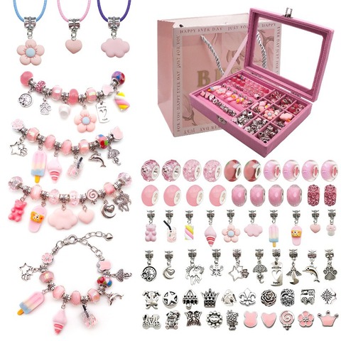 ชุดทำสร้อยข้อมือแบบกริดชาร์มเก้าวังสีชมพู66ชิ้นเครื่องประดับงานทำมือแบบทำมือสร้อยข้อมือของขวัญสำหรับเด็กสร้อยข้อมือของขวัญสำหรับผู้หญิง