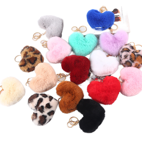 女の子と女性のためのソフトハート型ポンポンキーリングバッグチャームかわいい毛皮ぬいぐるみフェイクキーチェーン