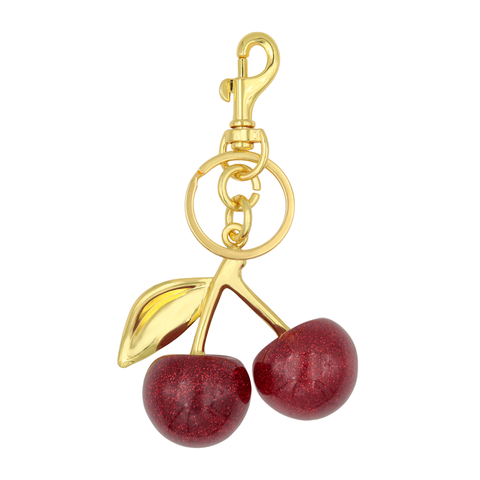 女性のための赤いチェリーバッグチャームキーチェーン絶妙なエレガントな小さな新鮮なチェリーY2Kメタルキーリングかわいいファッショナブルなアクセサリー