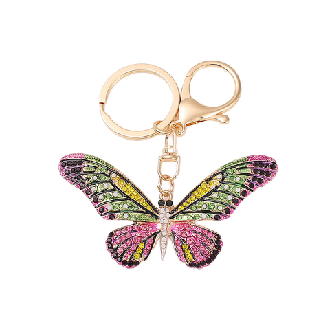 ラインストーン女性用バッグ装飾吊り下げ用クリエイティブブリンブリンカラフルな蝶キーホルダーライトメタル合金車