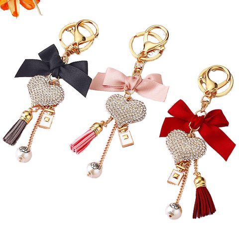 大きなクリエイティブカラーリボン布布金属キーチェーンペンダントレディースバッグアクセサリーボウパールデザインファッションスタイルクリスタル