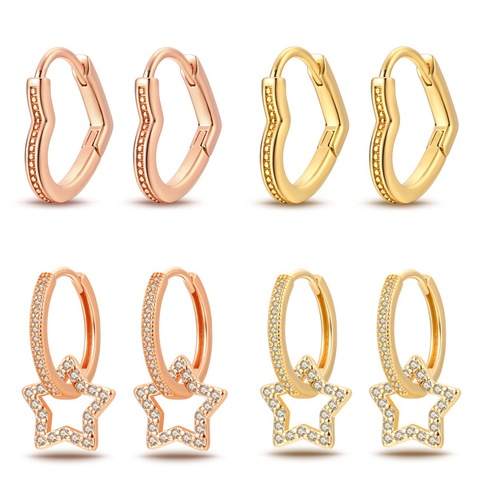 Pendientes de oro de alta temperatura Estrella simple en forma de corazón con circón Cobre Chapado en plata Pendientes Joyería al por mayor