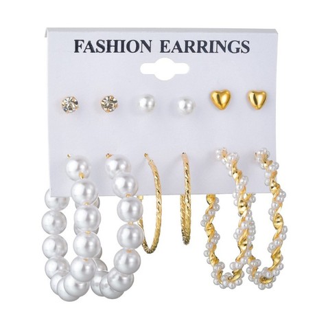 Los últimos juegos de pendientes de perlas chapados en oro para mujer, pendientes de aro de aleación de Hip Hop populares con forma de flecha, joyería a granel de Venta caliente